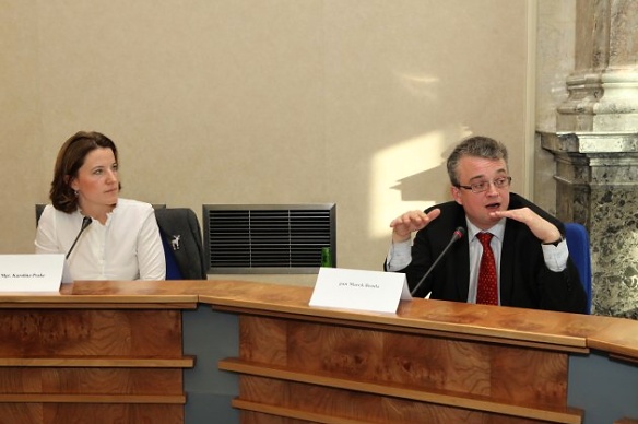 Praha 29. listopadu 2011 - Dnes dopoledne se ve Strakově akademii na pozvání místopředsedkyně vlády Karolíny Peake (VV) sešla pracovní skupina tvořená poslanci, zástupci jednotlivých ministerstev, veřejným ochráncem práv Pavlem Varvařovským, vládní zmocněnkyní pro lidská práva Monikou Šimůnkovou či zástupcem Svazu měst a obcí Pavlem Vetešníkem a dalšími k návrhům starostů a poslanců na řešení problematiky nepřizpůsobivých skupin obyvatelstva a sociálně vyloučených lokalit.