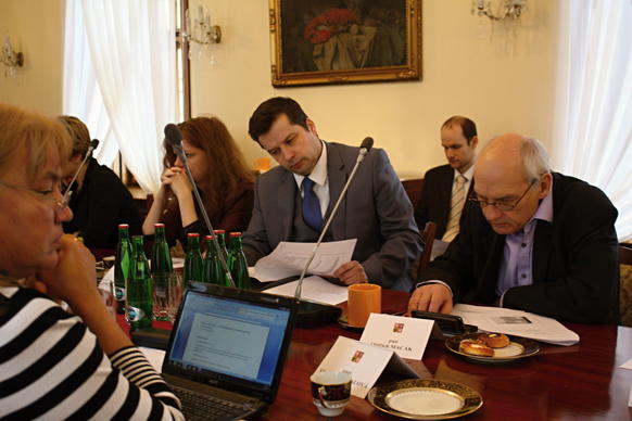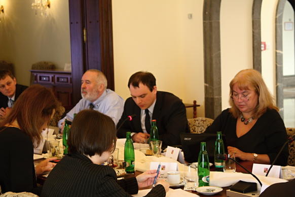 První ze série kulatých stolů byl zaměřen na veřejné finance a instituce. Zástupci Ministerstva financí představili aktuální makroekonomický výhled české ekonomiky, aktualizované projekce dlouhodobé udržitelnosti veřejných financí a opatření v oblasti boje proti daňovým únikům. Nově jmenovaný náměstek ministra vnitra pro státní službu Josef Postránecký informoval o naplňování zákona o státní službě. V diskuzi se účastníci zajímali zejména o klíčové parametry připravovaného ústavního zákona o rozpočtové odpovědnosti, očekávané dopady provedení opatření v oblasti boje proti daňovým únikům a apelovali na řádnou implementaci služebního zákona s odkazem na riziko zpoždění schvalování již připravených Operačních programů. Aktuálně probíhá intenzivní jednání vlády s Evropskou komisí ohledně uzavření této předběžné podmínky pro čerpání prostředků EU.