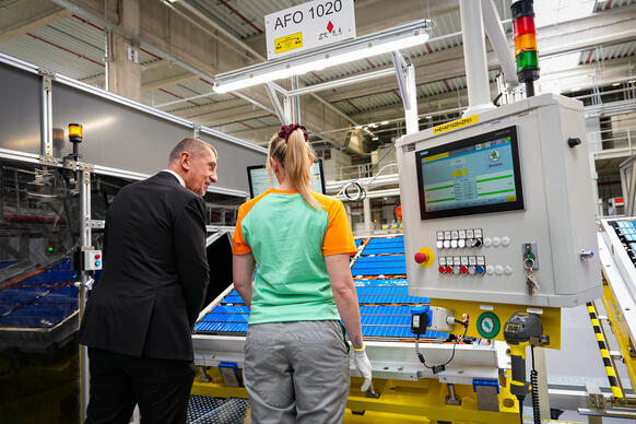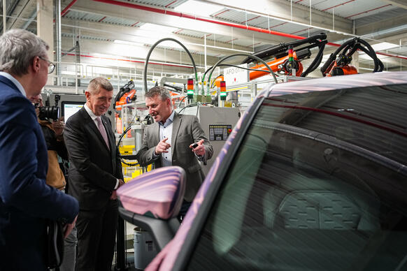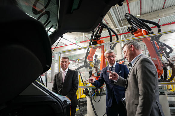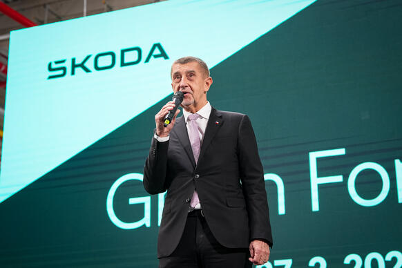 Premiér Babiš se zúčastnil otevření nové haly Škody Auto na montáž bateriových systémů