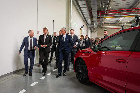 Předseda vlády ČR Andrej Babiš a ministr průmyslu a obchodu Karel Havlíček se v pátek 27. února 2026 zúčastnili v Mladé Boleslavi slavnostního otevření nové haly Škody Auto na montáž bateriových systémů. Automobilka investuje do rozšíření výroby baterií 5 mld. korun a stává se tak největším výrobcem bateriových systémů pro elektromobily v koncernu Volkswagen.