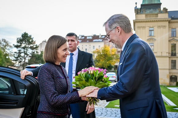 Předseda vlády ČR Petr Fiala se v pondělí 16. října setkal ve Strakově akademii s prezidentkou Moldavské republiky Maiou Sanduovou. Hlavními tématy jednání byly perspektiva členství Moldavska v Evropské unii, obranně-průmyslová spolupráce a možnosti spolupráce v oblasti energetiky.