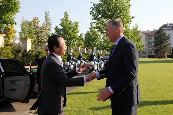 Kromě ekonomických témat se předsedové vlád také zabývali hrozbou nové chřipky nebo bezpečnostními tématy jako je například chystaná protiraketová obrana na českém území. Japonský premiér přijel do České republiky kvůli summitu s Evropskou unií, který proběhne v pondělí v Praze.
