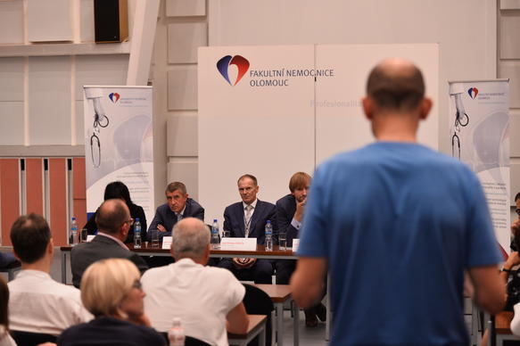 Na závěr vláda navštívila Fakultní nemocnici Olomouc, kde s vedením nemocnice i zdravotnickým personálem řešila mimo jiné platy ve zdravotnictví, vzdělávání a probíhající modernizaci zařízení. Projekt rekonstrukce původní centrální budovy Františka Josefa byl zařazen mezi strategické investice vlády a schválen v rozsahu 1,5 miliardy korun, z čehož více než jedna miliarda je dotace od státu. Zásadní investiční akcí je také nová budova II. interní kliniky – gastroenterologie a geriatrie, která bude navíc prvním nemocničním objektem v ČR splňujícím standardy pasivní budovy. Investice do novostavby je 335 milionů korun a hotová má být v srpnu letošního roku.