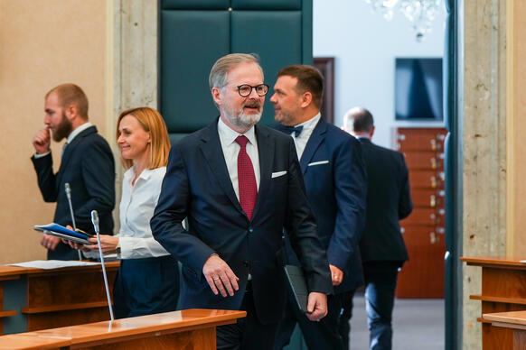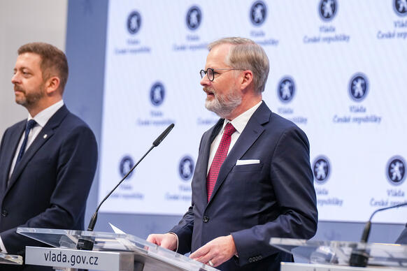 „Jsem přesvědčen, že naše vláda byla vláda úspěšná. Když jsme přebírali vládu po vládě Andreje Babiše, tak jsme čelili jako země řadě velkých problémů. Doznívala ještě pandemie covidu-19, přicházela nová, silná vlna, museli jsme se vyrovnávat s krachem Bohemia Energy a s rostoucími cenami energií, s rostoucí inflací. Byli jsme země, která nehospodařila dobře, rychle se zadlužovala, byli jsme energeticky závislí na Rusku. A do těch všech problémů, které jsme museli řešit prakticky hned od našeho nástupu, přišla válka – ruská agrese na Ukrajině a všechny následné problémy, s nimiž se musela Evropa i Česká republika vypořádat včetně masivní uprchlické vlny,“ připomněl premiér v demisi.