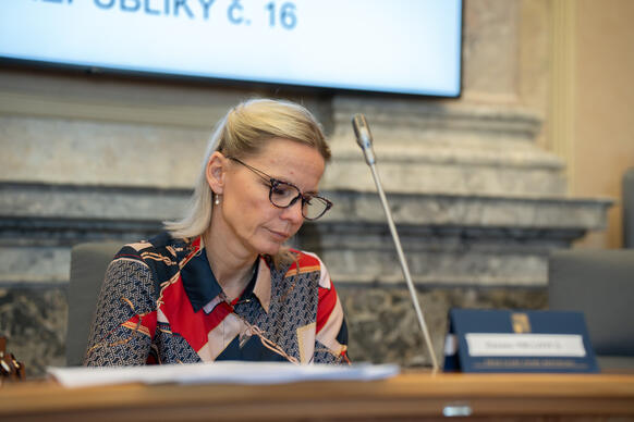 Místopředsedkyně vlády a ministryně financí Alena Schillerová na tiskové konferenci shrnula hlavní body schůze vlády, 27. dubna 2026.
