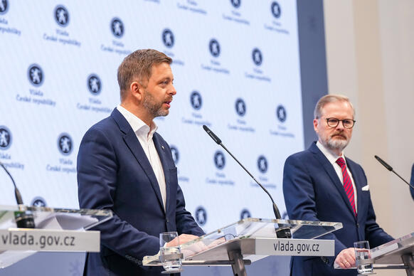 Návrh státního rozpočtu počítá pro příští rok se schodkem 237 miliard korun, což je zákonem o rozpočtové odpovědnosti stanovený limit, a nad rámec tohoto schodku obsahuje dvě strategické bezpečnostní položky, a to 18,3 miliardy korun na projekt dostavby jaderné elektrárny Dukovany a 30,7 miliardy korun na obranné výdaje státu. „Znovu jménem naší vlády apeluji na vznikající koalici, která se z velké části zaklíná rozpočtovou odpovědností, aby tyto zákonem stanovené parametry dodržela a aby výdaje na energetickou a vojenskou bezpečnost naší země neutopila v provozu, protože by to ohrozilo naši bezpečnost a také zbytečně zadlužilo občany České republiky,“ podotkl premiér v demisi Petr Fiala.